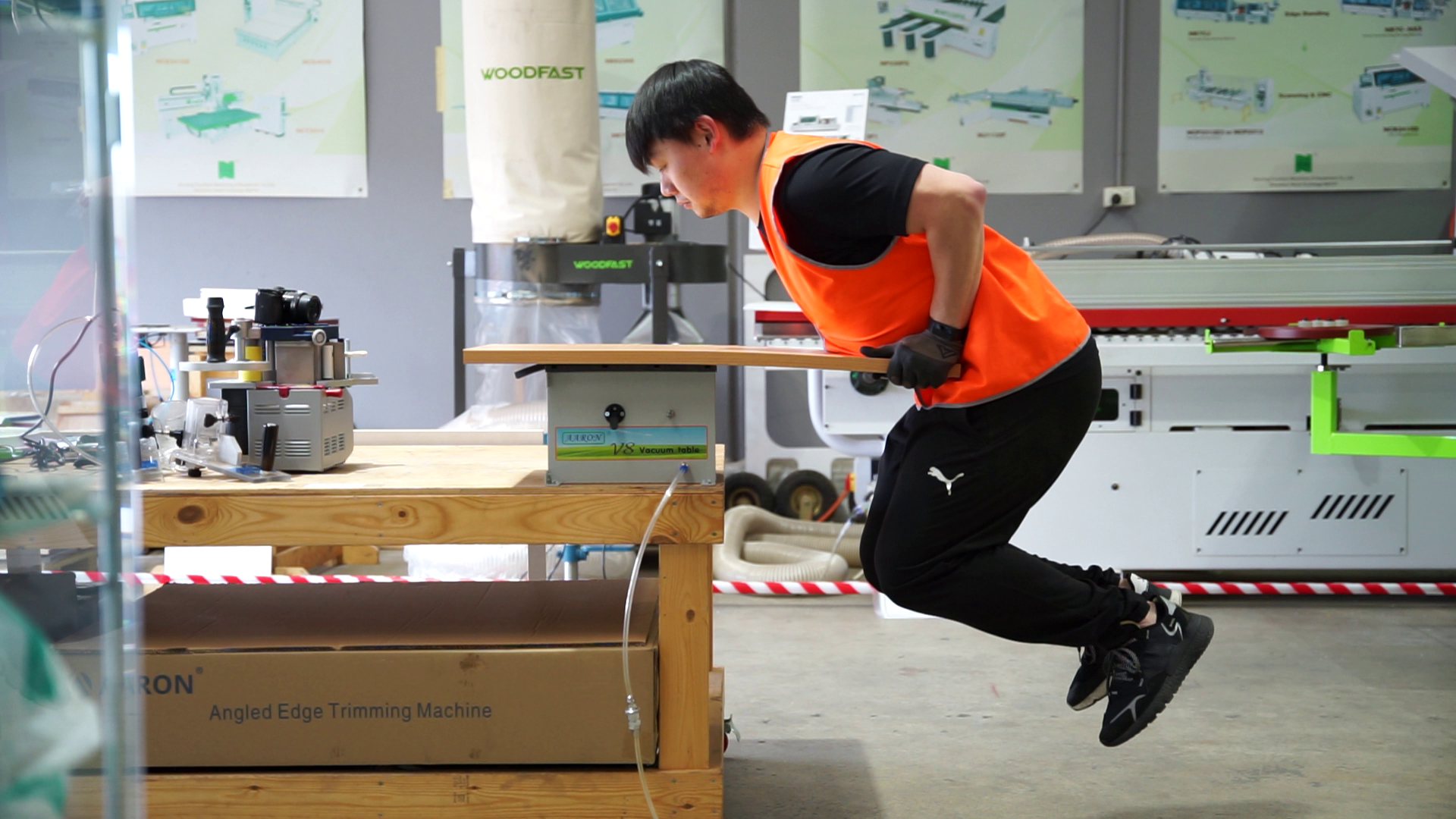 The Aaron V8 vacuum table replace traditional trestles and clamps for the holding of boards, glass, marble and other flat panel workpieces. Operated only by an air compressor, the table provides phenomenal holding strength, instant suction and does not damage workpieces.
